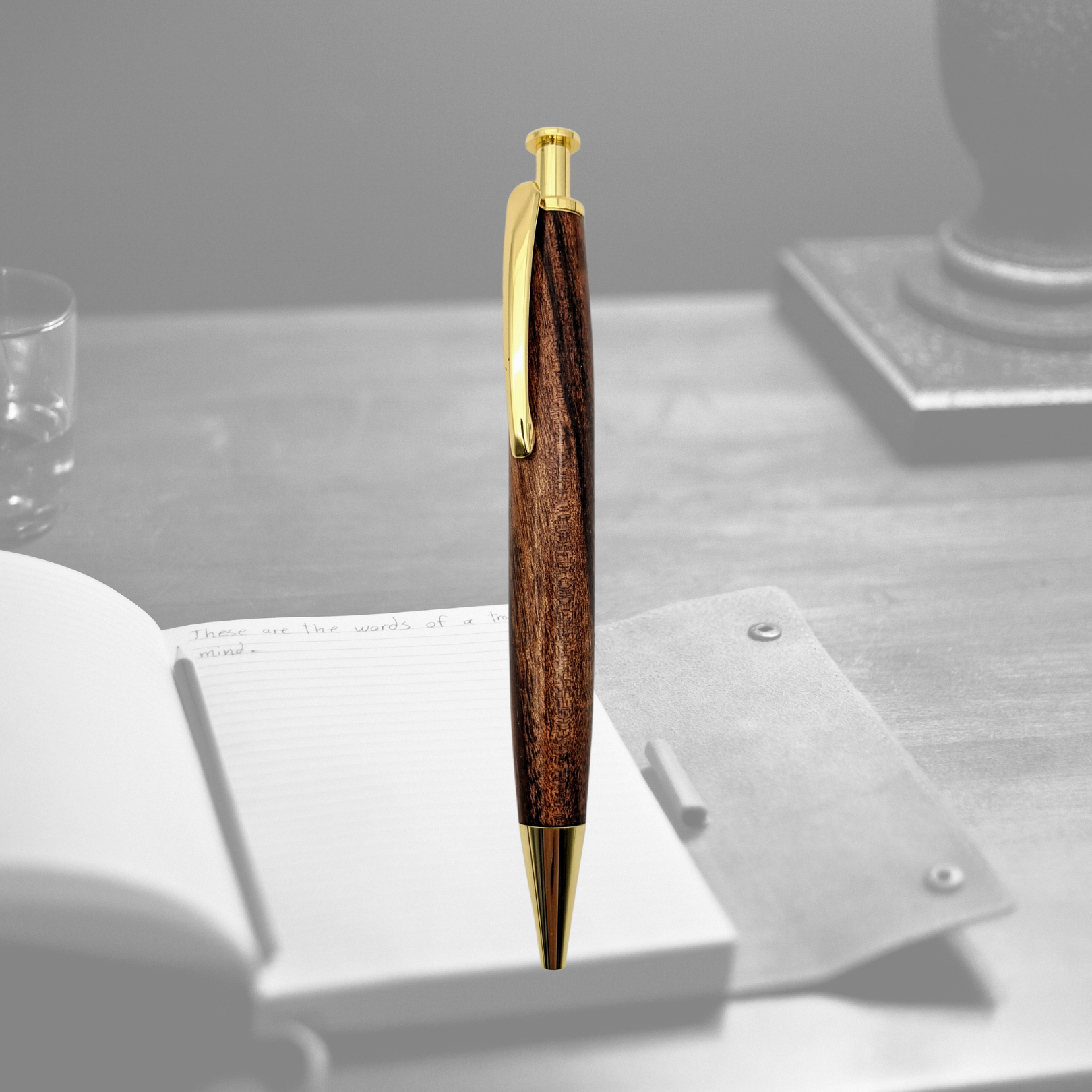 Elevate your writing with these stylish clicker pens crafted from beautiful Tasmanian timber.