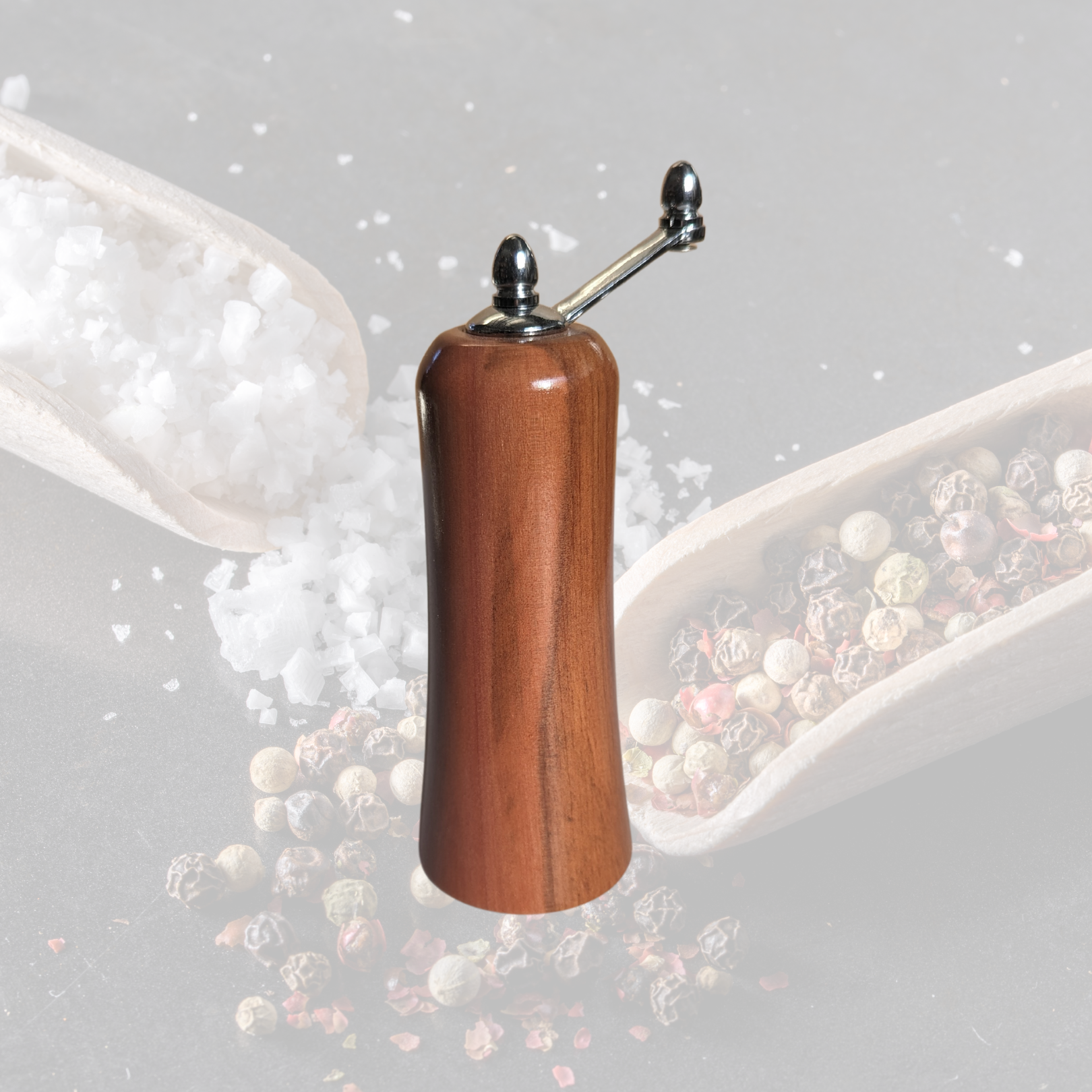 Elevate your culinary experience with our Medium Salt and Pepper Grinders, expertly crafted from beautiful Tasmanian timbers. Standing at 140mm, these grinders strike the perfect balance between convenience and capacity, making them ideal for everyday use.